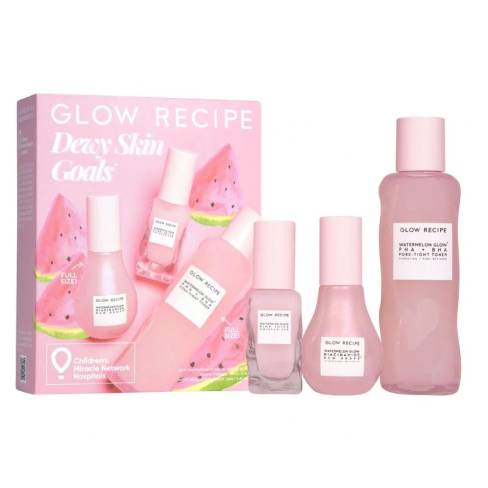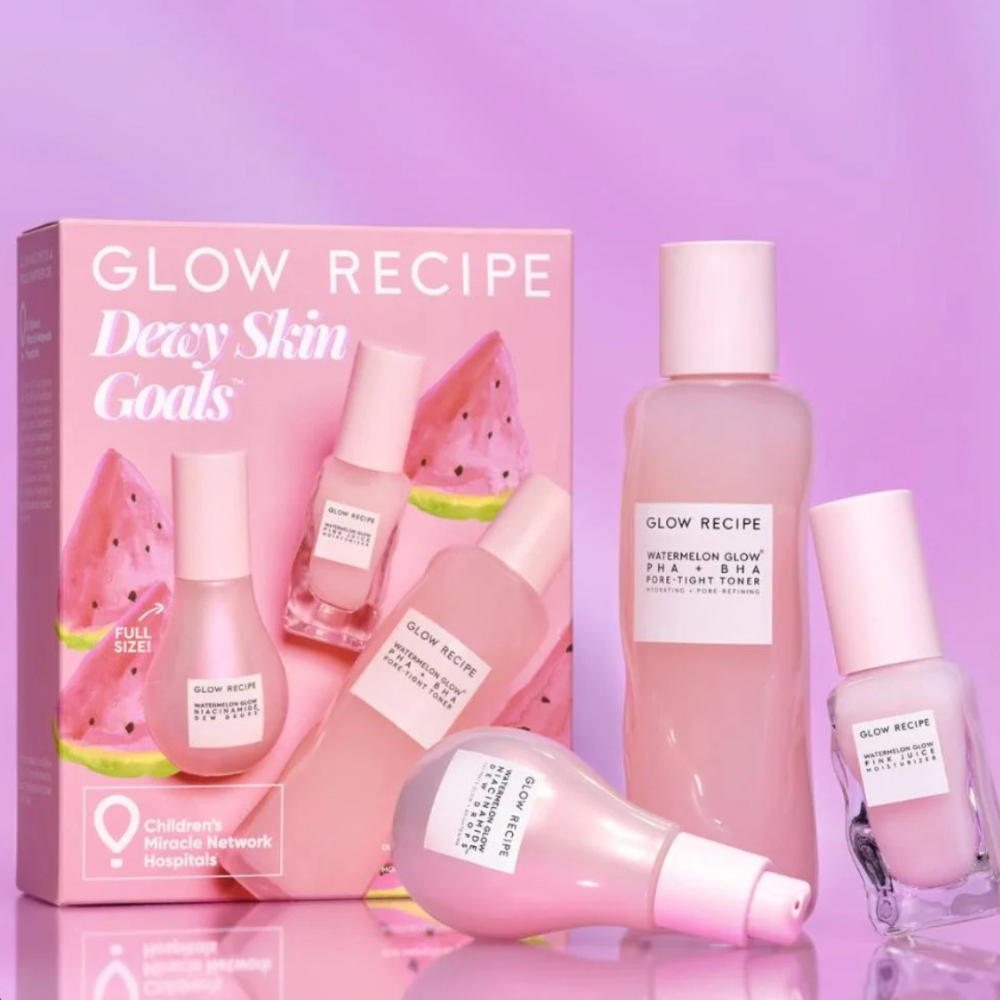 مجموعة "Glow Recipe Dewy Skin Goals" هي الحل المثالي للحصول على بشرة نضرة ومشرقة مثل لمعة الندى! تضم المجموعة ثلاثة منتجات مميزة تعتني ببشرتك وتعمل على تحسين ملمسها ومنحها توهجاً طبيعياً، مع تركيبة غنية بمستخلص البطيخ لتنعيم وترطيب البشرة 🍉.